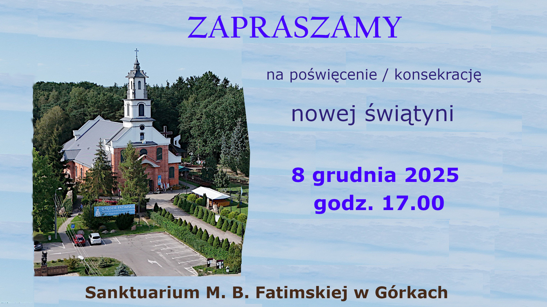 Według oficjalnych zapowiedzi kustosza sanktuarium, konsekracja nowego kościoła odbędzie 8 grudnia br. Cieszymy się i czekamy na to ważne wydarzenie.