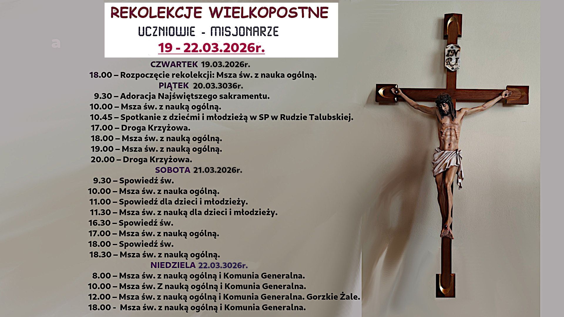 Rekolekcje w czwartek 26 marca i piątek 27 marca o godz. 20.40