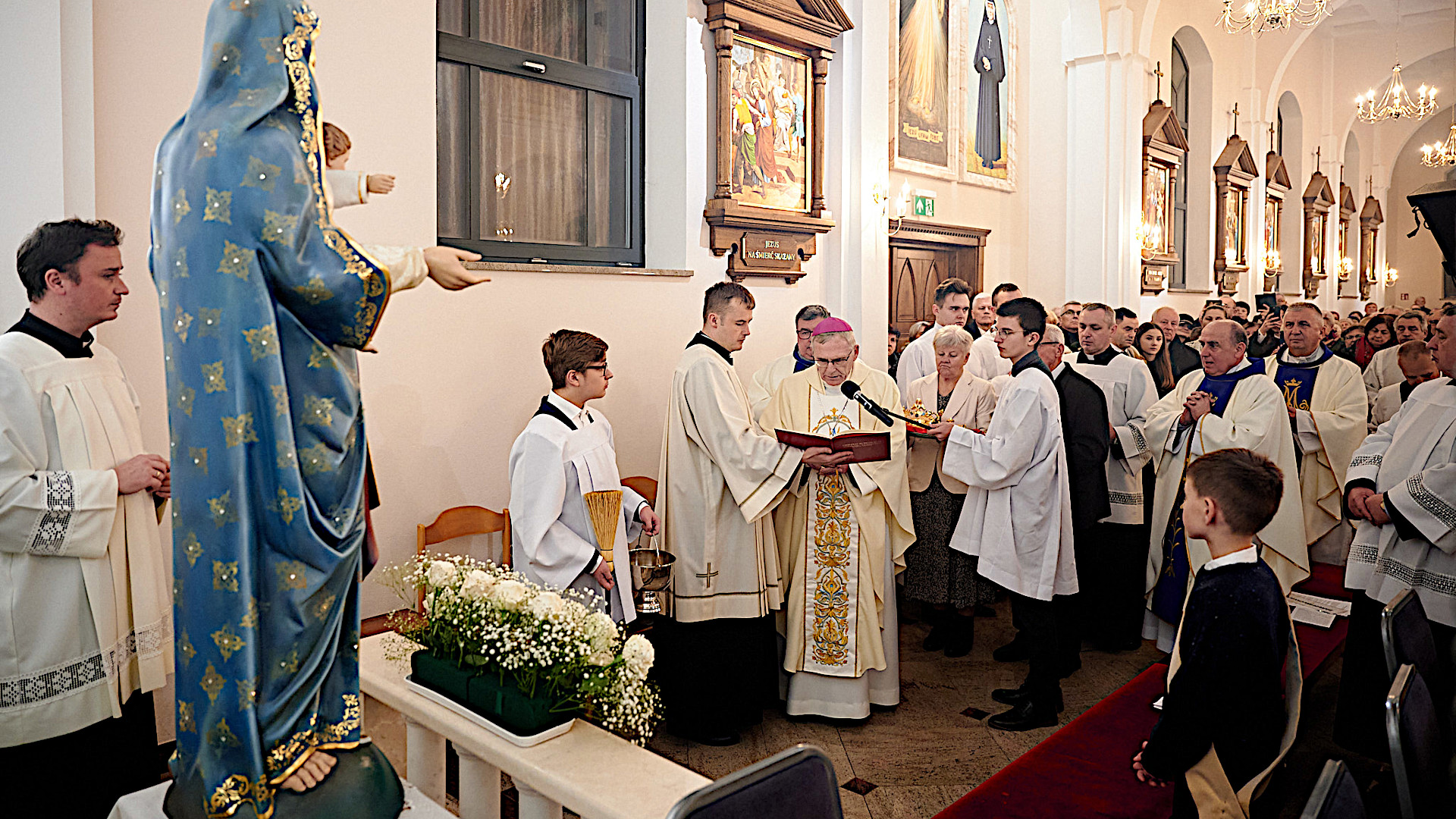 Wszystkim, którzy uczęszczamy czy będziemy uczęszczać do tej świątyni, powinna towarzyszyć radość i duma. Mamy piękny kościół, poświęcony Bogu i oddany nam, byśmy się nim opiekowali i do niego uczęszczali, byśmy się w nim uświęcali. Na zakończenie Mszy św. odśpiewaliśmy głośno i w podniosłym nastroju „Ciebie Boga wysławiamy”. Za kościół, za parafię i za sanktuarium. (Zdjęcia wykonał fotograf Maciej Pyza).